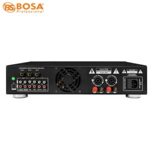 AMPLY LIỀN VANG BOSA T6000 có 1 số thông số của sản phẩm và có các cổng vào âm thanh bằng jack AV (bông sen), có các cổng để ra loa bằng jack loa speakon và jack loa thông dụng để phù hợp với mọi loại loa, được trang bị cổng kết nối để mang tính thẩm mỹ cao khi ghép nối, ngoài ra còn được trang bị thêm 1 cái quạt tản nhiệt ở phía sau để cho sản phẩm không bị nóng và bền hơn khi phải hoạt động liên tục trong 1 thời gian dài.