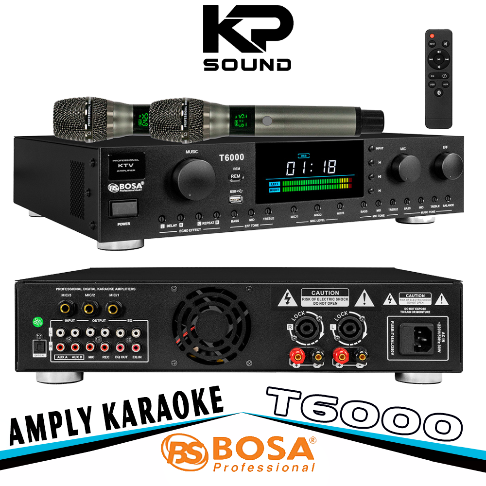 AMPLY KARAOKE BOSA T6000 Là sản phẩm được thiết kế với kích thước chuẩn và không quá lớn và nặng với sự bắt mắt, sang trọng và tinh tế bởi màu đen làm nổi bật lên sàn nhạc của bạn, phù hợp với các dàn karaoke gia đình, phòng trà, quán cafe… với chất lượng âm thanh cực hay.