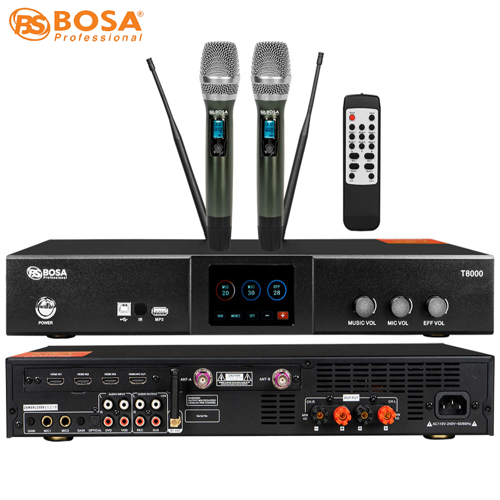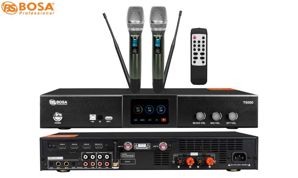 AMPLY KARAOKE 3 IN 1 BOSA T8000 là thiết bị All-in-One dùng cho hát karaoke gia đình đến các sự kiện, hội nghị hay các hệ thống âm thanh chuyên nghiệp.