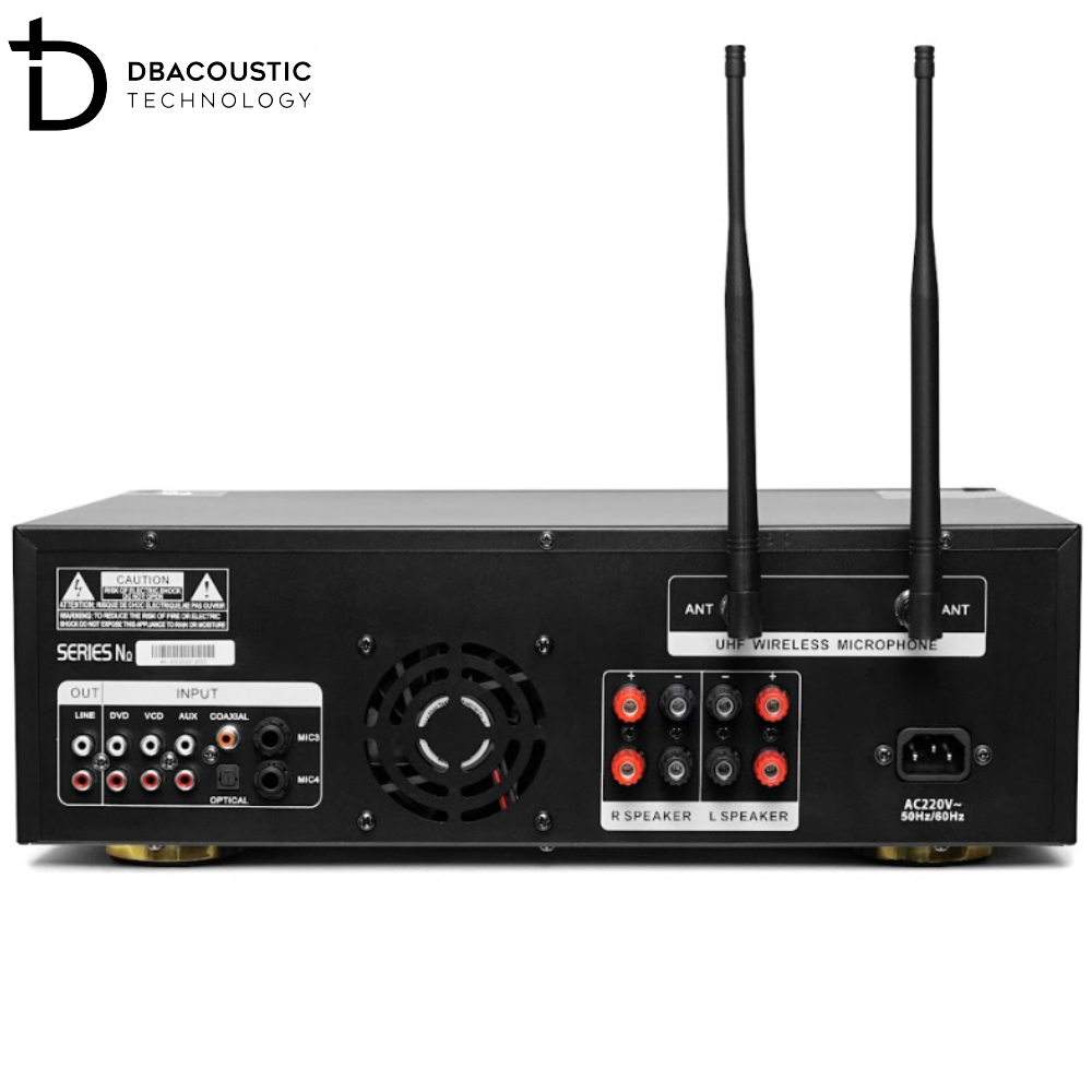 Tiếp nối những siêu phẩm Amply kỹ thuật số hiện đại được ra mắt trước đó, năm nay DBacoustic ra mắt sản phẩm Amply Vang Số 3in1 dBacousitc AK350. Dòng sản phẩm tích hợp cục đẩy, vang số và micro không dây cùng nhiều tính năng, công nghệ Digital hiện đại đáp ứng mọi tiêu chuẩn âm thanh giải trí karaoke.