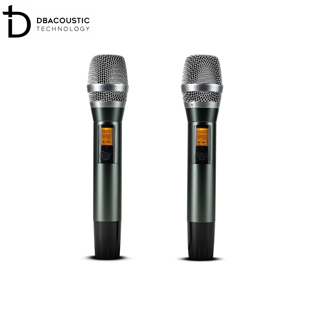 Đi kèm là 2 tay micro không dây Dbacoustic ứng dụng sóng siêu cao UHF cho phạm vi hoạt động trong khoảng 30m. Trang bị khả năng tự dò sóng sạch cùng chức năng lựa chọn sóng xa hoặc sóng gần giúp ngăn chặn nhiễu, trùng sóng xảy ra.