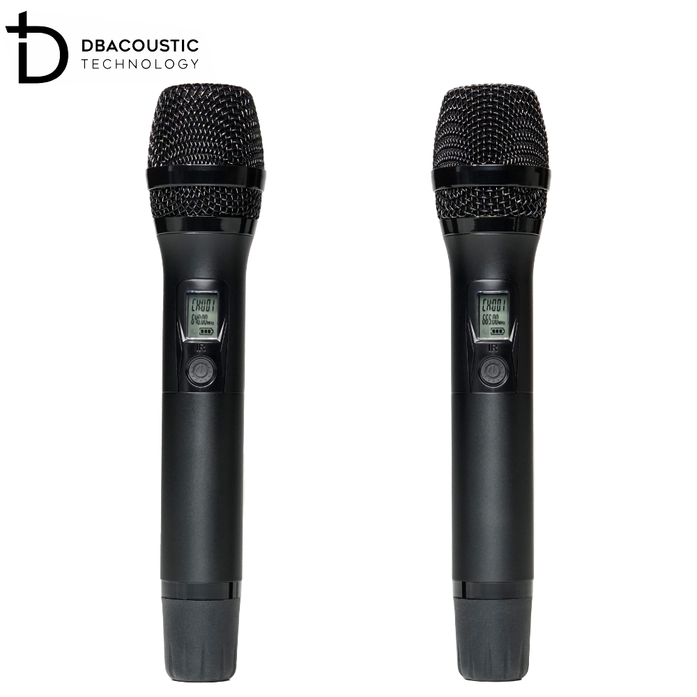 Bộ sản phẩm còn có 2 tay micro không dây dBacoustic nhỏ gọn, làm bằng hợp kim phủ nano chống trầy xước, chống bám vân, tạo cảm giác thoải mái cho người dùng khi cầm nắm. Trên thân micro không dây này cũng được trang bị 1 màn hình LCD nhỏ hiển thị tần số, dung lượng pin và 1 nút nguồn mềm, rất dễ thao tác.