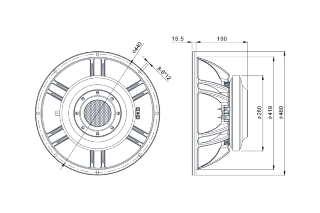 Củ loa SPLmax 18FW153-8 có đường kính tổng thể là 460mm