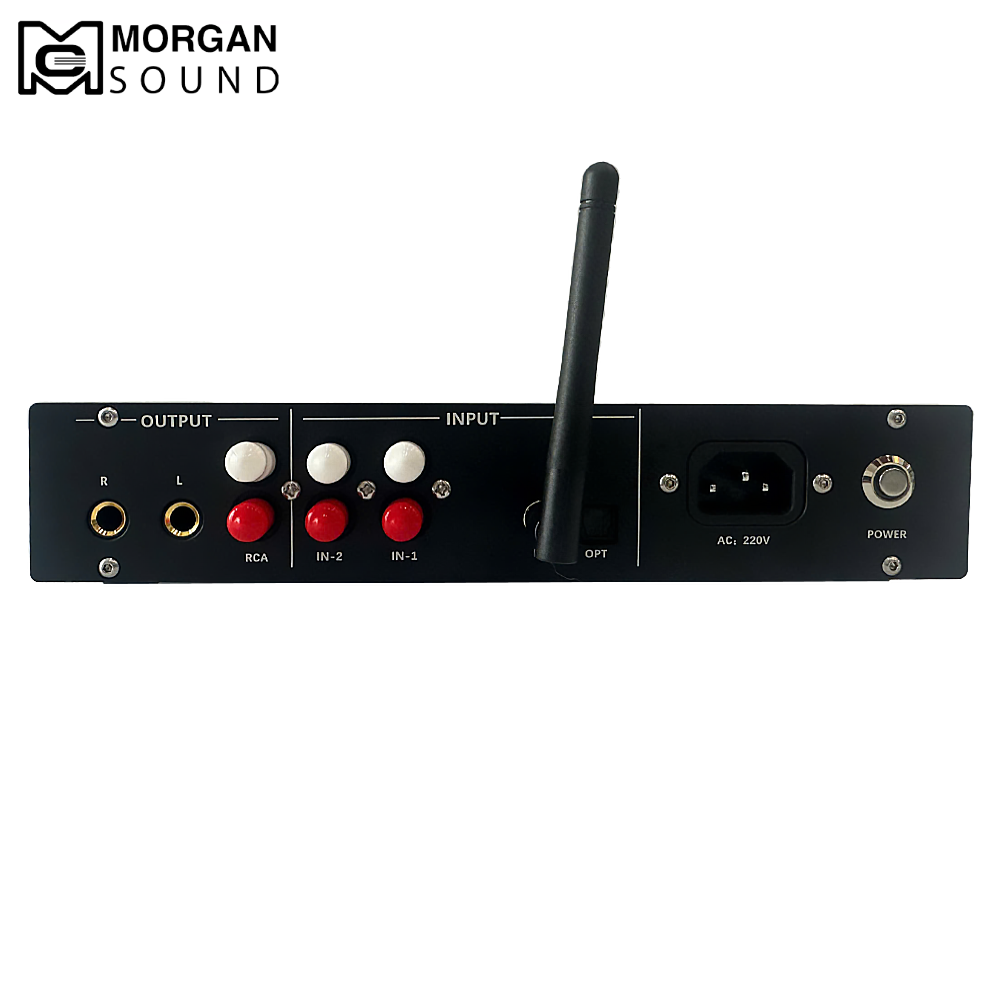 MORGAN SOUND E5 nổi bật với mạch xử lý tín hiệu chất lượng cao, hỗ trợ Bluetooth aptX/aptX-HD, ngõ vào quang Optical và RCA truyền thống, mang đến khả năng kết nối linh hoạt với nhiều thiết bị hiện đại.