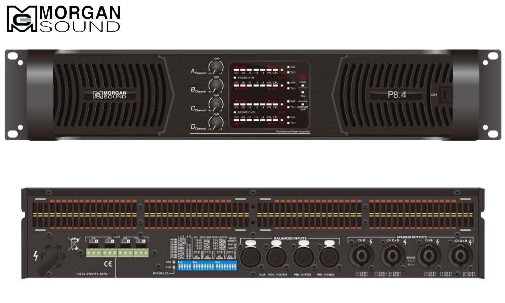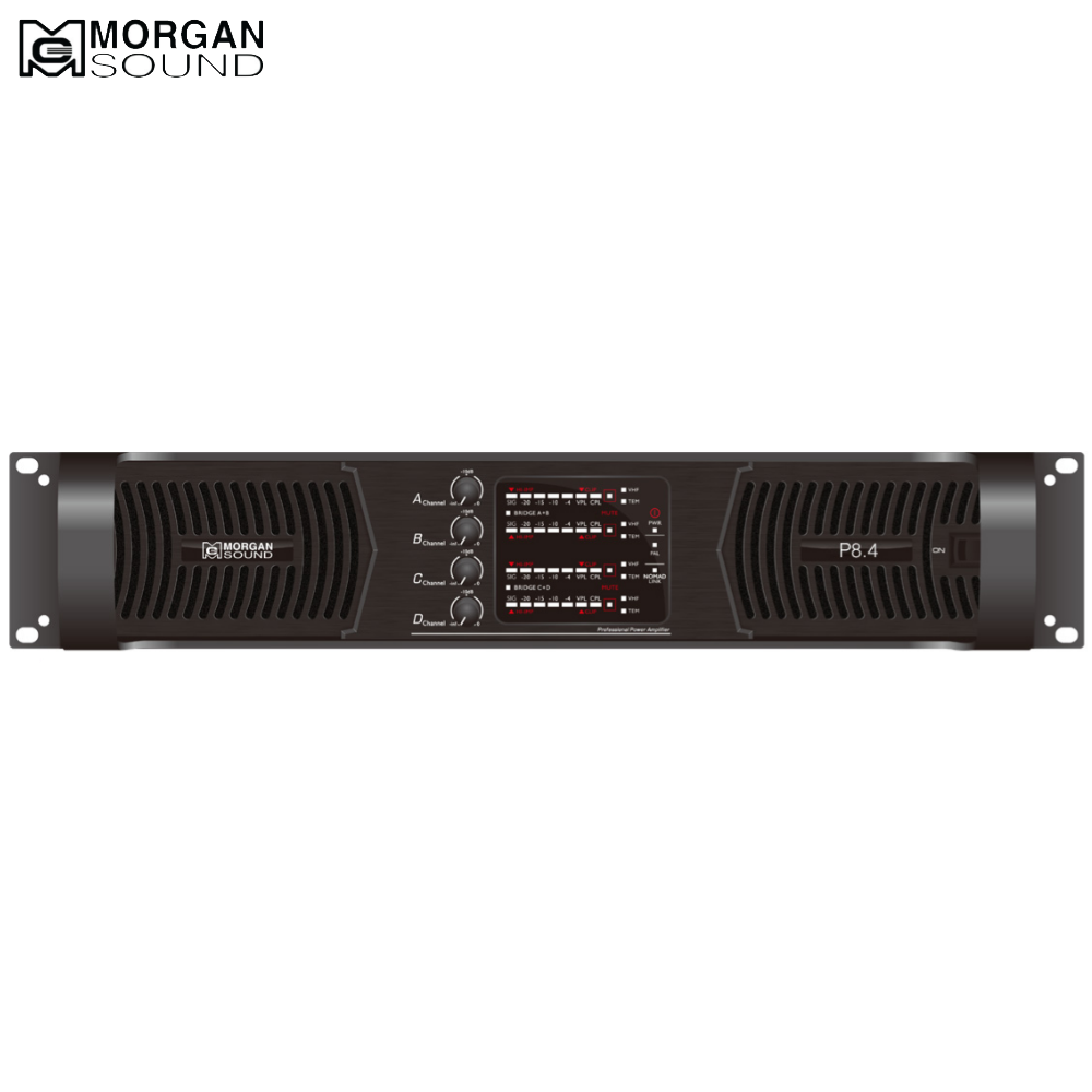 Morgan Sound P8.4 là phiên bản amplifer cao cấp của nhà MORGAN. Với công suất lên đến 1500w/Kênh 8ohm. Class TD thế hệ mới sử dụng toàn bộ sò sắt của MEXICO cao cấp. Morgan Sound P8.4 mang đến chất âm uy lực, mạnh mẽ nhưng cực kỳ trong trẻo. Toàn bộ linh kiện của P8.4 đều rất cao cấp. Jack Speakon, XLR, Jack nguồn đều của Neutrik thụy sĩ. Phích cắm nguồn Hubbell.