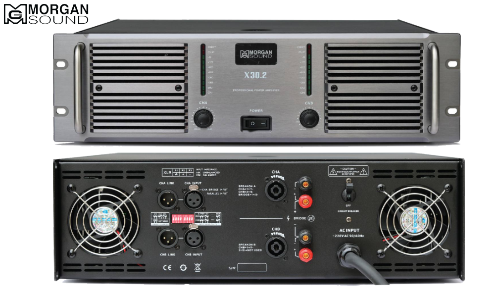 Đẩy công suất MORGAN SOUND X30.2 dòng đẩy công suất chuyên trị subwoofer 18 inch và 21 inch, một cái tên không thể bỏ qua. Sở hữu sức mạnh khủng khiếp cùng công nghệ tiên tiến, thiết bị này được thiết kế để phối ghép hoàn hảo với các dòng subwoofer công suất lớn như 218 và 221. Đáp ứng tốt nhu cầu âm thanh sân khấu, hội trường lớn, bar – club, hoặc các sự kiện quy mô ngoài trời.