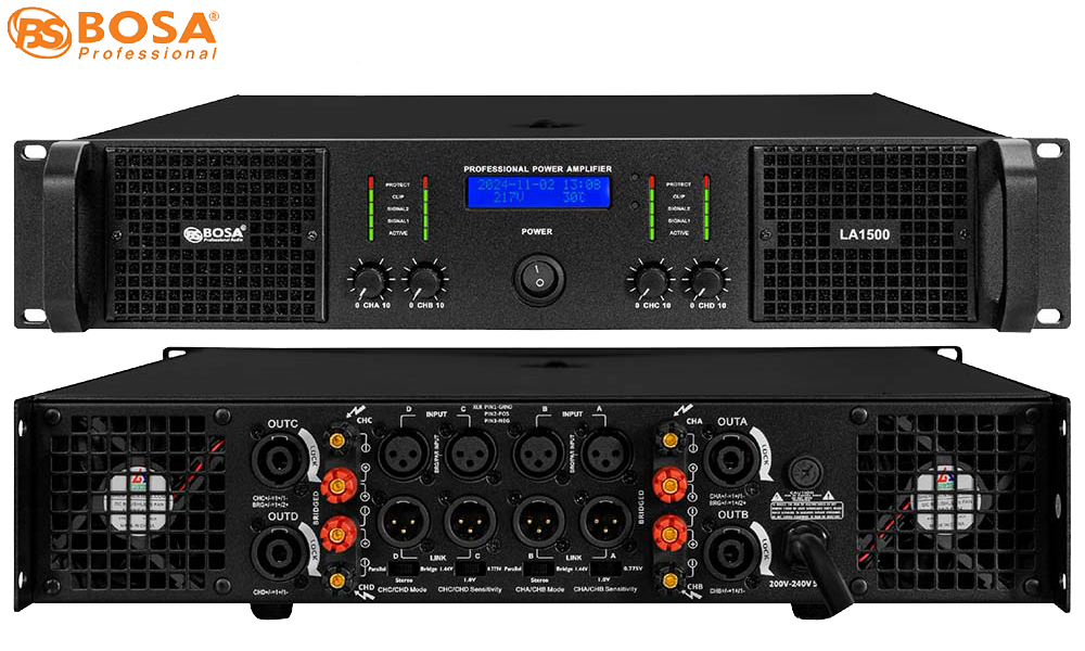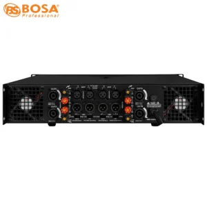 Mặt sau Bosa LA1500 có 4 cổng in-out bằng jack Canon để nhận và truyền tín hiệu tốt hơn và ổn định hơn, có 4 cổng out ra loa bằng jack chuyên dụng để truyền tải tín hiệu ra loa tốt hơn và chuyên nghiệp hơn, còn có 4 jack out ra loa bằng jack thông thường để phù hợp với tất cả các loại dây truyền và loa mà bạn đang có rất tiện dụng, ngoài ra còn được trang bị 2 cái quạt tản nhiệt ở 2 bên giúp thiết bị hoạt động liên tục mà không bị nóng.