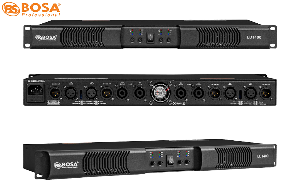 Main Đẩy Công Suất Bosa LD1400 là sản phẩm cao cấp được cải tiến từ sản phẩm Main Bosa trước, với Main Đẩy Công Suất Bosa LD1400 thì vẫn được kế thừa những gì tốt nhất mà sản phẩm đời trước đã có và được cải tiến nhỏ hơn và nhẹ hơn và được thiết kế còn 4 kênh nhưng vẫn được trang bị công suất lớn để đáp ứng được tất cả các nhu cầu sử dụng của khách hàng.