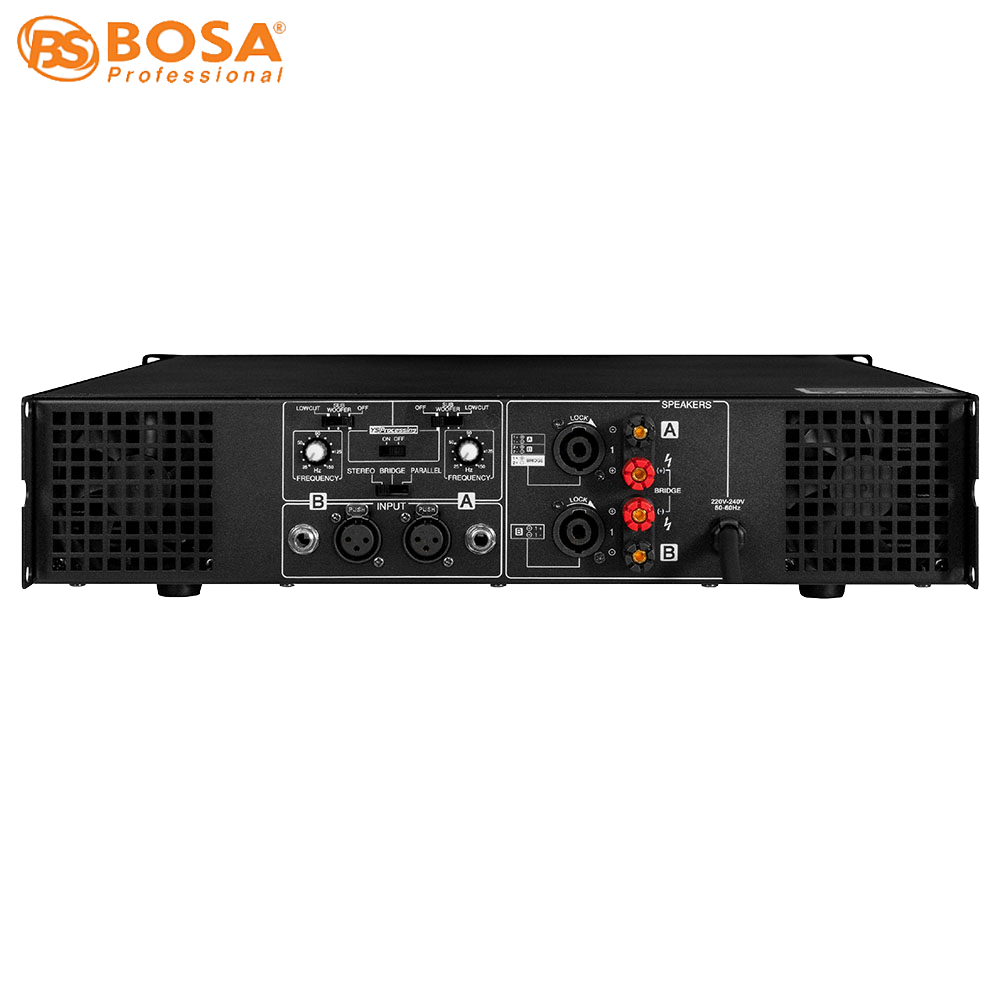 Mặt sau main Bosa LX4040có 2 cổng in-out bằng jack Canon để nhận và truyền tải tín hiệu tốt hơn, ổn định hơn và còn có 2 cổng out ra loa bằng jack loa chuyên dụng để truyền tín hiệu ra loa tốt hơn, ổn định hơn, chuyên nghiệp hơn, ngoài ra còn được trang bị 2 cái quạt tản nhiệt ở hai bên để đẩy hơi nóng ra ngoài cho thiết bị hoạt động liên tục mà không bị nóng.