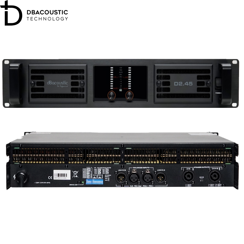 DBacoustic D2.45 là mẫu cục đẩy công suất 2 kênh cao cấp, nổi bật với thiết kế hiện đại và khả năng khuếch đại mạnh mẽ. Với công suất đầu ra lên đến 2350W/CH ở 8Ω và 4400W/CH ở 4Ω, sản phẩm đáp ứng hoàn hảo nhu cầu sử dụng trong các dàn âm thanh sân khấu, karaoke kinh doanh chuyên nghiệp hoặc sự kiện lớn ngoài trời.
