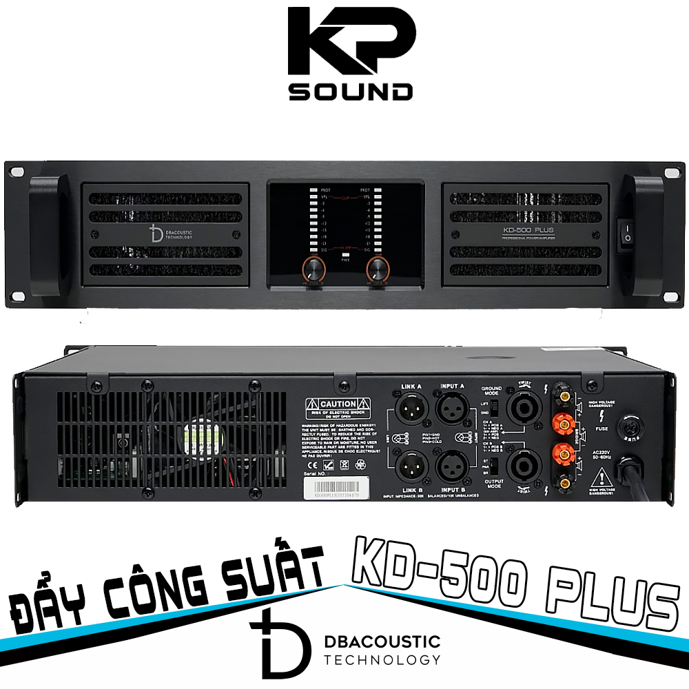 – Cục đẩy KD500 Plus là dòng công suất 2 kênh của hãng âm thanh dB acoustic