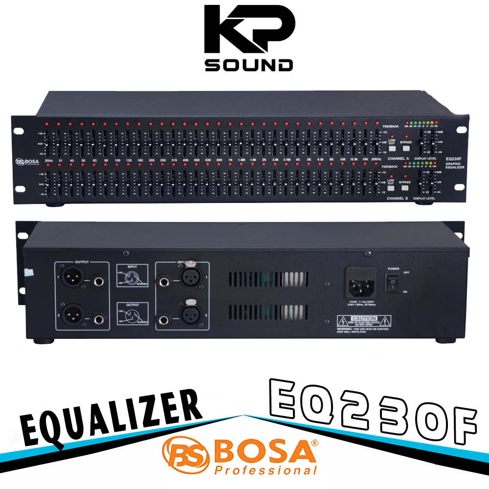 EQUALIZER BOSA 230F là thiết bị không thể thiếu trong môi trường sáng tác nhạc chuyên nghiệp.Thiết bị giúp âm thanh trong trẻo, chi tiết, mạnh mẽ . Cân bằng tần số của dàn âm thanh, giúp cho âm thanh trong trẻo, tiếng bass mạnh mẽ, tiếng treble chi tiết, tiếng xì chuyên nghiệp.