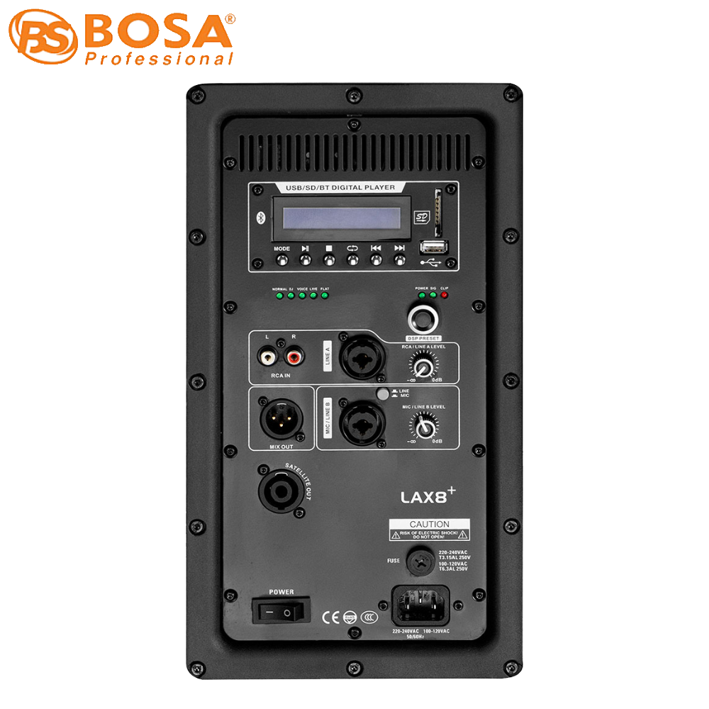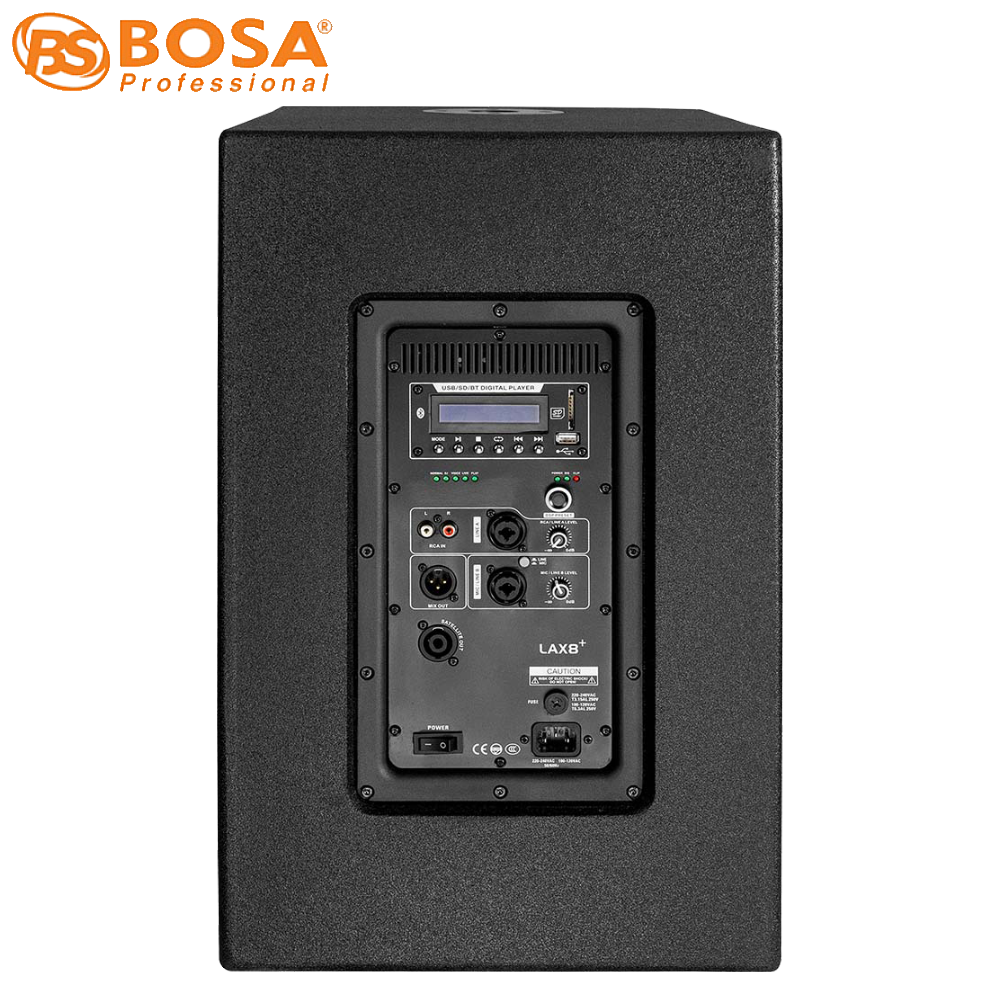 Mặt sau được trang bị bảng điều khiển với các cổng kết nối in-out bằng các jack như bông sen, canon, 6 ly, speakon, để kết nối với các thiết bị khác tùy vào từng mục đích sử dụng của các bạn, có 1 màn hình hiển thị, có cổng cấp nhạc mp3 vào như USB, SD tiện dụng, được sử dụng nguồn rời và có lẫy thay đổi điện áp từ 110 – 220v phù hợp với nhiều nguồn điện khác nhau, và tất nhiên không thể thiếu công tắc nguồn rồi, và có đầy đủ logo và model của sản phẩm trên bảng điều khiển này.
