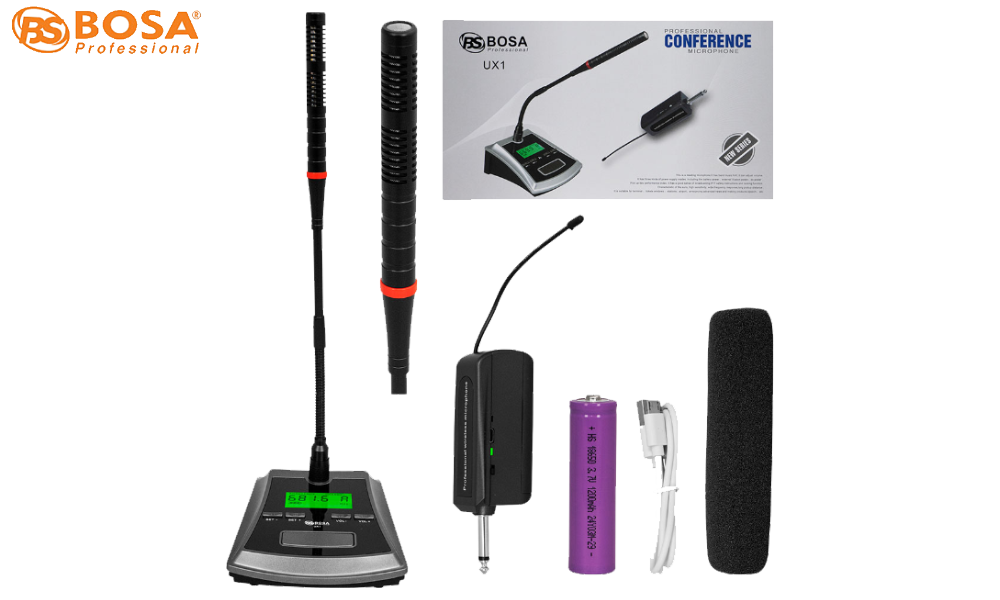 Micro Hội Nghị Không Dây Bosa UX1 chuyên nghiệp được sử dụng trong các buổi hội nghị, hội thảo cao cấp, đa quốc gia , là dòng micro hội nghị chuyên nghiệp với cả 1 hệ thống micro được thiết lập. Hệ thống micro hội nghị với phòng họp gồm nhiều người tham gia, mỗi người đều có và được phát biểu ý kiến riêng, như các buổi họp đại biểu, hội nghị giữa chủ tọa và nhiều thành viên, cần phải sử dụng .