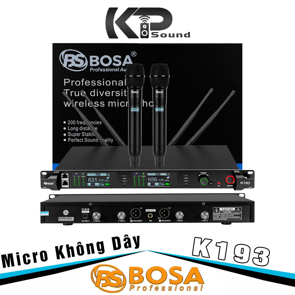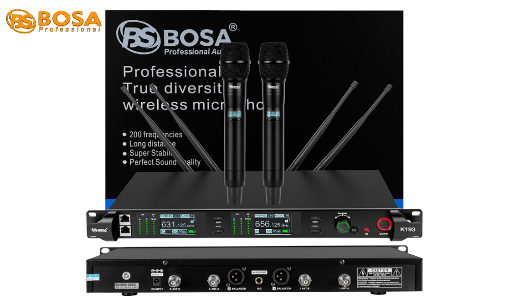 Micro không dây BOSA K193 là hệ thống micro cao cấp được thiết kế dành cho các sự kiện, sân khấu, karaoke kinh doanh và phòng họp chuyên nghiệp, nơi đòi hỏi chất lượng âm thanh vượt trội và khả năng hoạt động ổn định. Với hàng loạt công nghệ tiên tiến, BOSA K193 mang lại sự linh hoạt và kiểm soát âm thanh tối ưu cho người sử dụng.