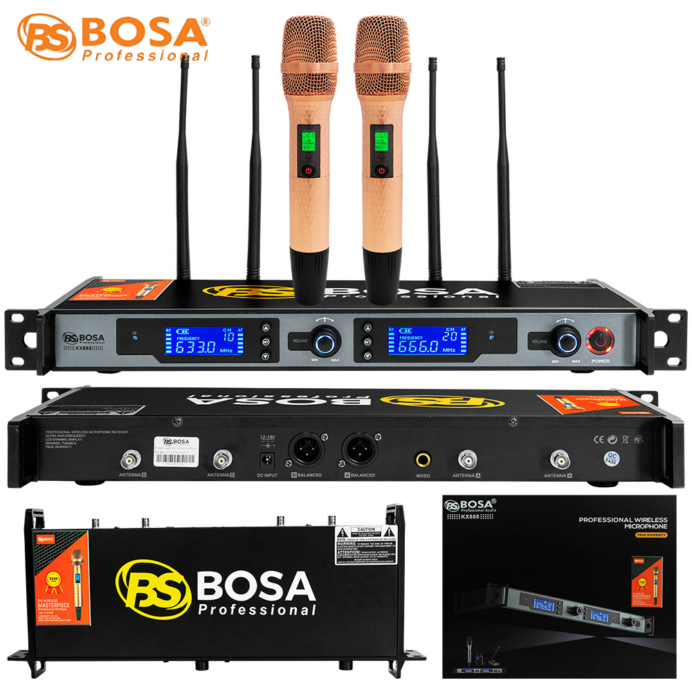 Micro Không Dây Bosa KX888 là dòng micro không dây cao cấp cho các phòng karaoke chuyên nghiệp, một trong những thương hiệu nằm trong top đầu trong các thương hiệu Micro tại Việt Nam,Micro Bosa hiện được khách hàng đánh giá cao với thiết kế đẹp, sang trọng, giá thành rất hợp lý và luôn đặt chất lượng lên hàng đầu.
