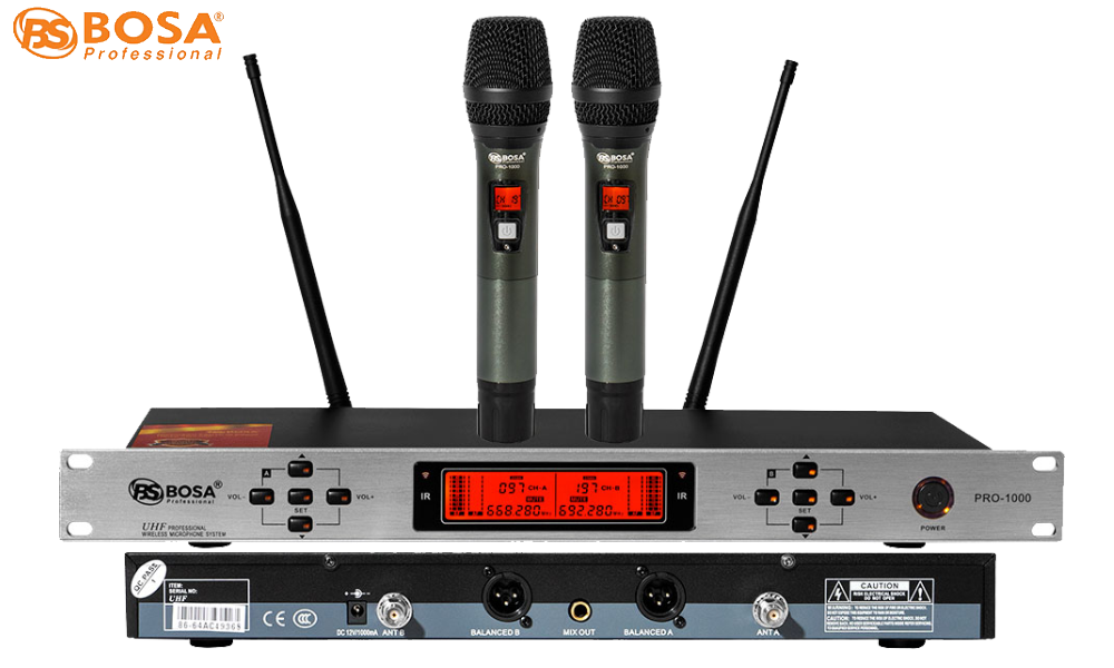 Micro Bosa PRO-1000 là sản phẩm được cải tiến từ thiết kế của Micro không dây Bosa PRO-100, với thiết kế cải tiến tạo nên sự khác biệt và mạnh mẽ hơn cho dàn Karaoke gia đình hoặc các dàn nhạc sống đám cưới hay dàn nhạc sân khấu.