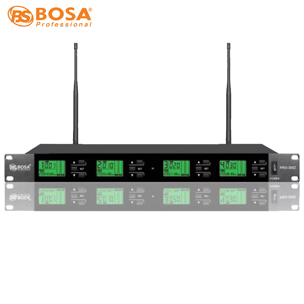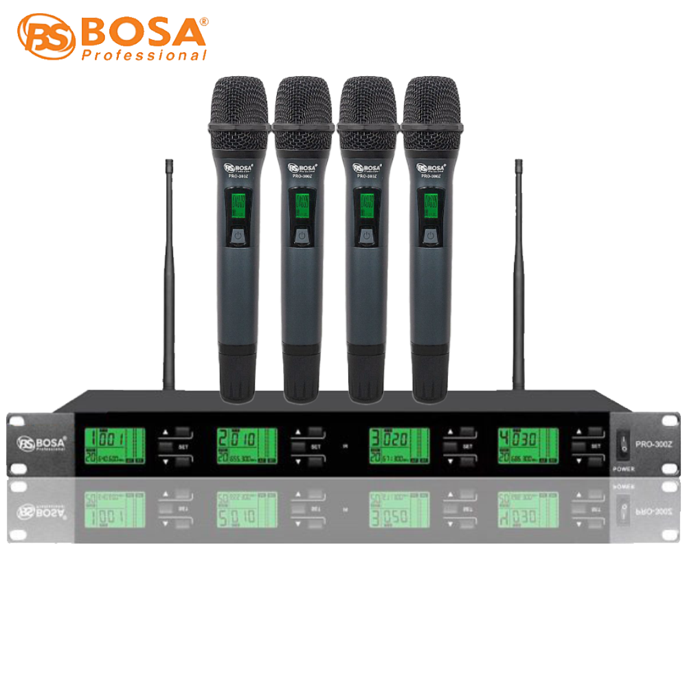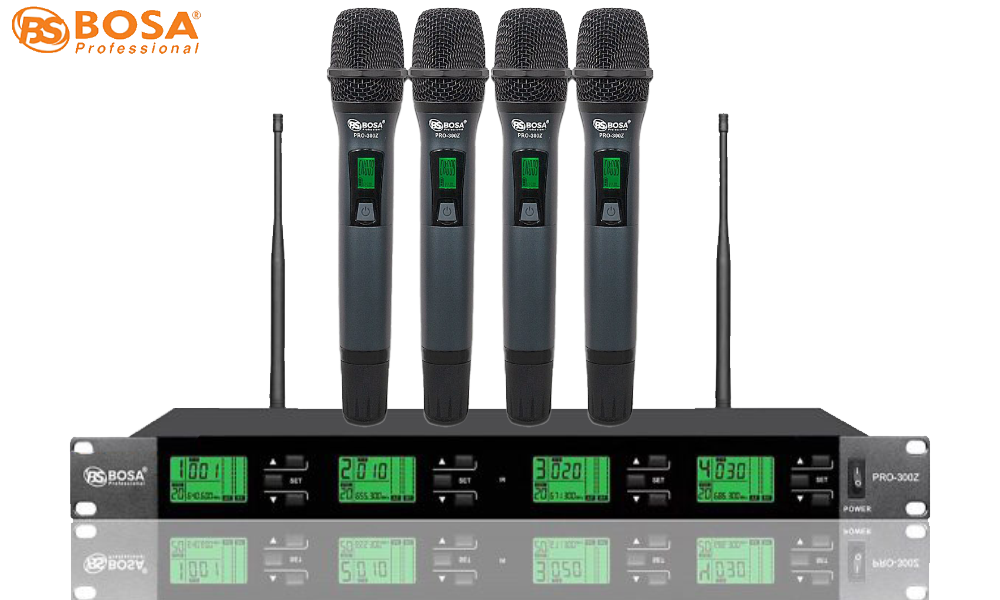 MICRO KHÔNG DÂY 4 MIC BOSA PRO 300Z được sử dụng phổ biến ở các sân khấu lớn hay các sự kiện chuyên nghiệp. Với hệ thống giảm ồn vượt trội, thiết bị này giúp âm thanh phát ra được chắc chắn, không bị rè hay tiếng phát ra không rõ ràng. Đồng thời, thiết bị này còn được trang bị một màn hình LCD hiện đại, giúp bạn có thể dễ dàng theo dõi các thông số trong khi sử dụng