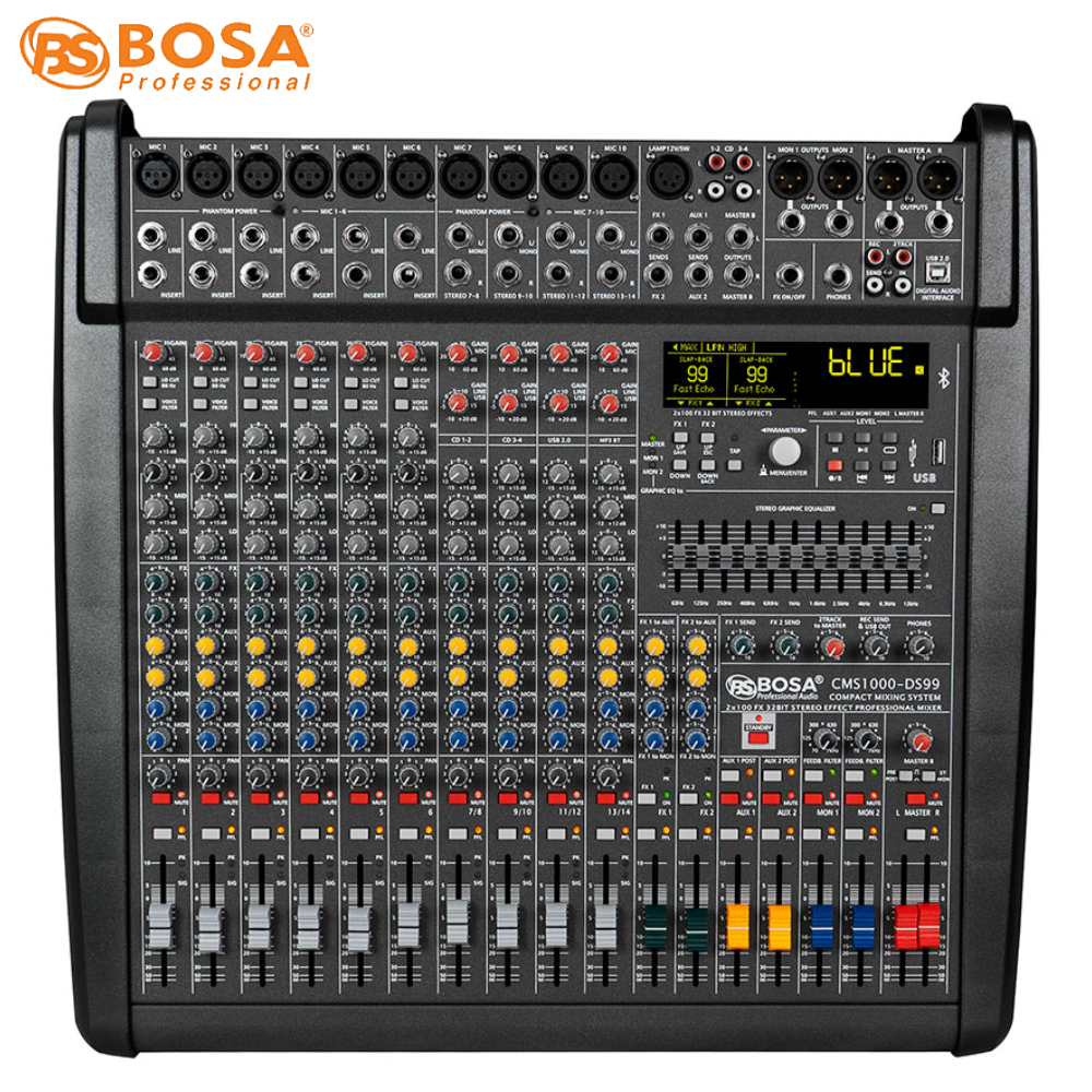 Mixer Bosa CMS1000-DS99 thiết kế hấp dẫn với 10 đường tiếng riêng biệt thuận tiện sử dụng cho mục đích karaoke, tổ chức sự kiện, sân khấu chuyên nghiệp…