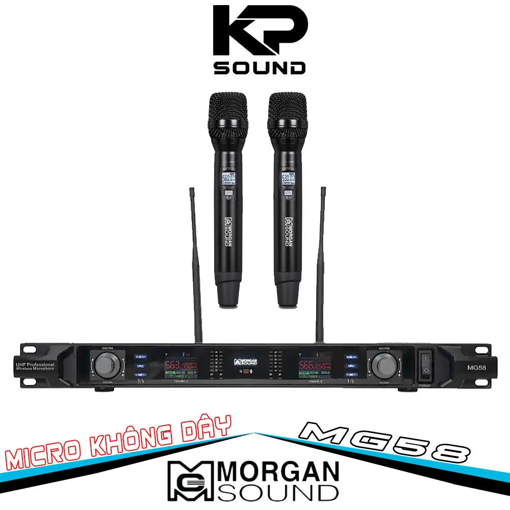Micro không dây Morgan Sound MG58 là dòng micro không dây cao cấp được nhập khẩu và phân phối bởi công ty INTEK. Micro Không Dây MORGAN SOUND MG58 sử dụng công nghệ hoàn toàn mới, đem lại chất âm vượt trội hoàn toàn so với dòng micro thông thường. Đây là dòng micro không dây có thể sử dụng cho các phòng hát karaoke chuyên nghiệp hoặc các dàn âm thanh sự kiện cao cấp.