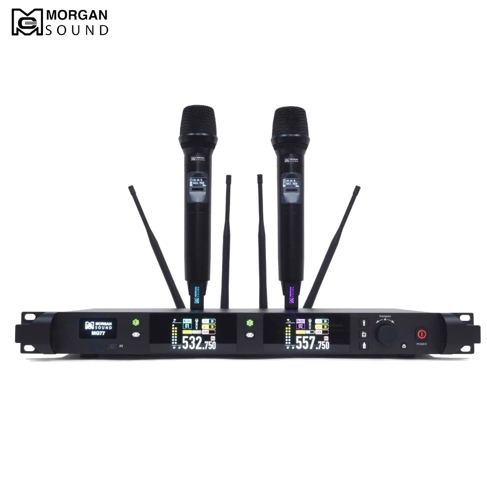 Micro không dây Morgan Sound MG77 là dòng micro không dây cao cấp được nhập khẩu và phân phối bởi công ty INTEK. Micro Không Dây MORGAN SOUND MG77 sử dụng công nghệ hoàn toàn mới, đem lại chất âm vượt trội hoàn toàn so với dòng micro thông thường. Đây là dòng micro không dây có thể sử dụng cho các phòng hát karaoke chuyên nghiệp hoặc các dàn âm thanh sự kiện cao cấp.