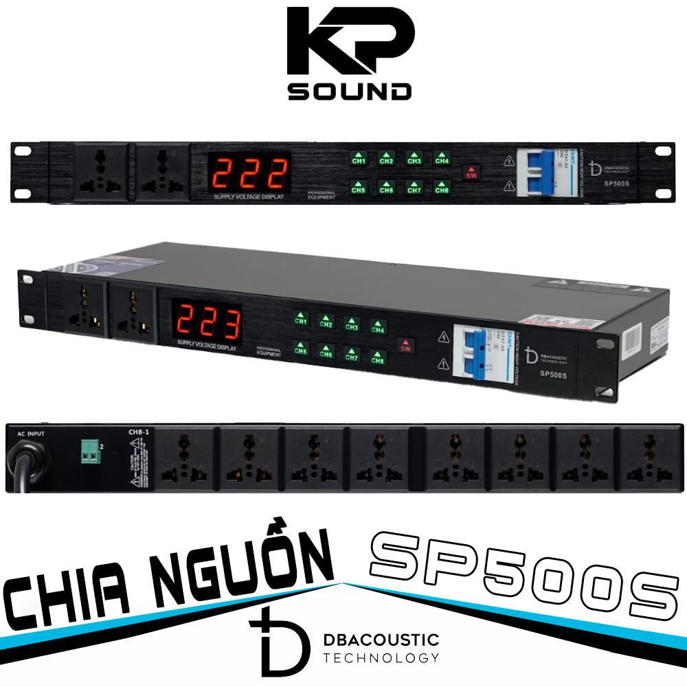 Chia nguồn SP500S DB Acoustic là thiết bị quản lý nguồn điện cho toàn bộ hệ thống âm thanh của phòng karaoke. Tác dụng của nó là ngắt điện/bật điện lần lượt từng thiết bị trong hệ thống để tránh sốc điện. Đây là một thiết bị rất cần thiết đối với hệ thống âm thanh bởi các thiết bị âm thanh đa phần đều có công suất lớn, việc bật tất cả các thiết bị đồng thời sẽ làm sụt điện áp và gây hại lớn tới tuổi thọ của thiết bị (đặc biệt là đầu karaoke bởi ổ cứng trong đầu là 1 thiết bị tinh tế và dễ bị tổn hại.