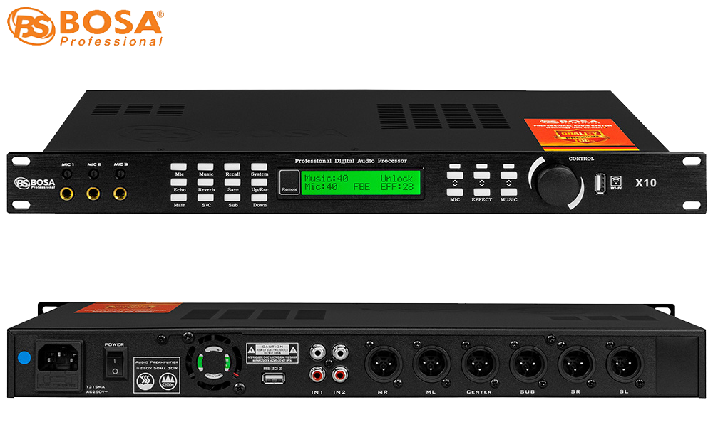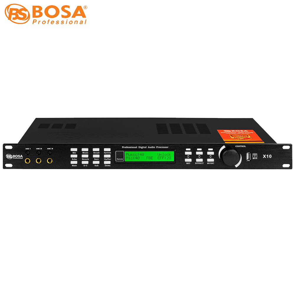 Vang số bosa X10 trang bị đầy đủ chế độ feedback (chống hú), cân bằng âm thanh compressor, cắt các dải tần số xấu,… cho âm thanh ra loa luôn trong, trung thực, người dùng sẽ cảm nhận đầy đủ các hiệu ứng âm thanh thú vị và độc đáo.