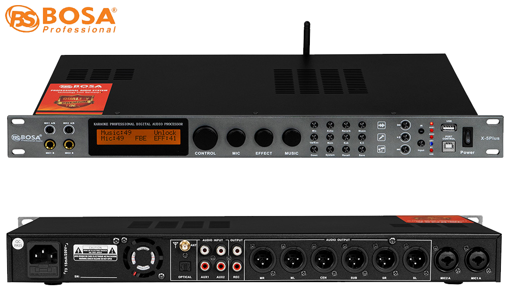 Vang số bosa X5 Plus trang bị đầy đủ chế độ feedback (chống hú), cân bằng âm thanh compressor, cắt các dải tần số xấu,… cho âm thanh ra loa luôn trong, trung thực, người dùng sẽ cảm nhận đầy đủ các hiệu ứng âm thanh thú vị và độc đáo.