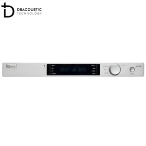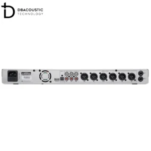 Mặt trước thiết bị là màn hình LED, hệ thống nút điều chỉnh và một núm vặn cỡ lớn với nhiều chú thích rõ ràng chi tiết thích hợp cho người dùng. Logo DBacoustic được thiết kế nổi bật phía góc trái tăng độ nhận diện cho thương hiệu.